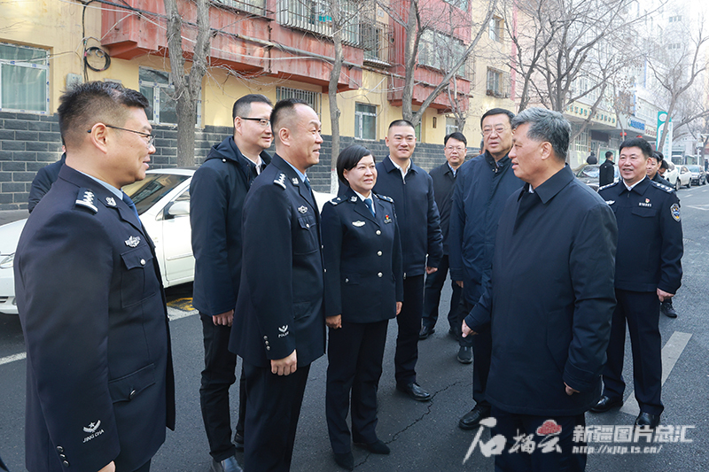 2月23日,自治区党委书记马兴瑞在乌鲁木齐市公安局沙依巴克区分局,详细了解警力下沉、服务群众等情况。石榴云/新疆日报记者 崔志坚摄