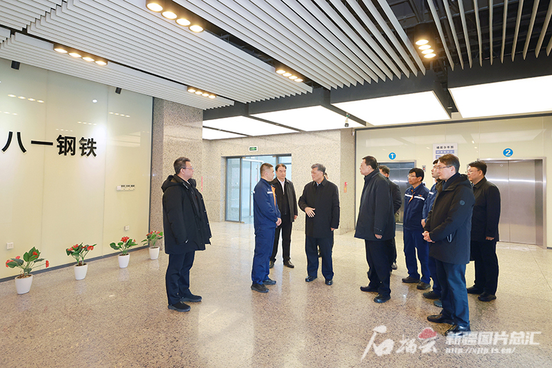 2月23日,自治区党委书记马兴瑞在宝钢集团新疆八一钢铁有限公司,听取企业生产经营情况介绍。石榴云/新疆日报记者 崔志坚摄