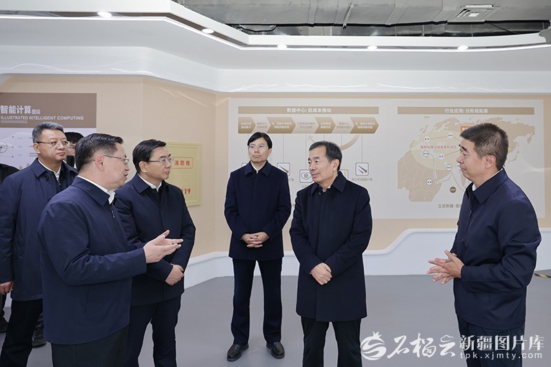 11月19日,自治区党委书记陈小江在克拉玛依云计算产业园,详细了解绿色算力产业布局发展情况。石榴云/新疆日报记者崔志坚摄