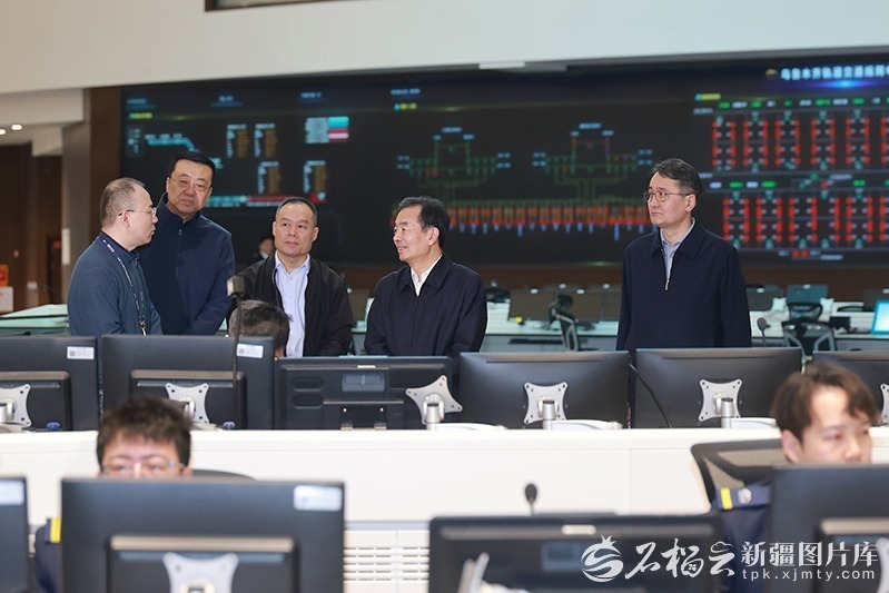 2月20日,自治区党委书记陈小江在乌鲁木齐轨道交通调度指挥中心,慰问坚守岗位的工作人员,详细了解地铁客流组织、设备运行、运力保障情况。石榴云/新疆日报记者崔志坚摄