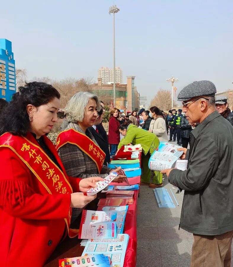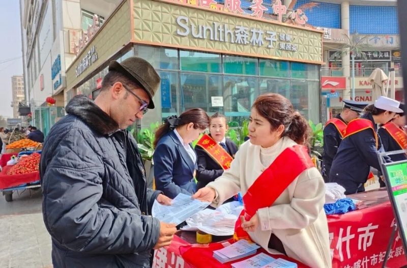 2月28日,喀什市妇联联合市公安局、检察院、卫健委等多个单位开展以“建设法治喀什・巾帼在行动”为主题的“三八”维权周普法宣传活动,普及妇女儿童相关法律法规,提升群众法治维权意识。