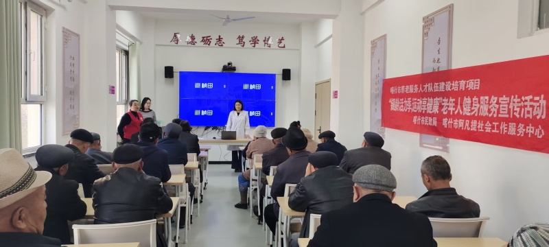 为进一步倡导健康文明的生活方式和生活理念,增强社区居民的身体素质,丰富群众的精神文化生活,推进全民健身运动发展,近日,喀什市阿凡提社会工作服务中心联合东湖街道滨湖社区开展“银龄活力季,运动享健康”老年人健身服务宣传活动,社区青春行动—寸草心青年志愿者助老活动。