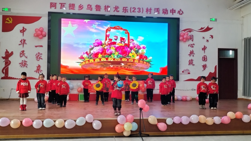 欢声笑语辞旧岁,策马扬鞭迎新春。12月30日上午,阿瓦提乡23村新时代文明实践站暖意融融、喜气洋洋,群众村晚暨“骏马迎新・童趣贺岁”元旦主题活动在此热闹举行。辖区干部群众与中心幼儿园、6村幼儿园、11村幼儿园的全体师幼欢聚一堂,用精彩的表演共庆佳节,绘就民族团结、邻里和睦的美好画卷。