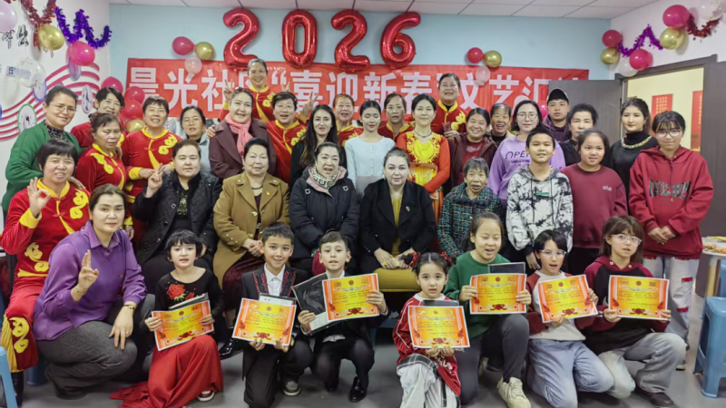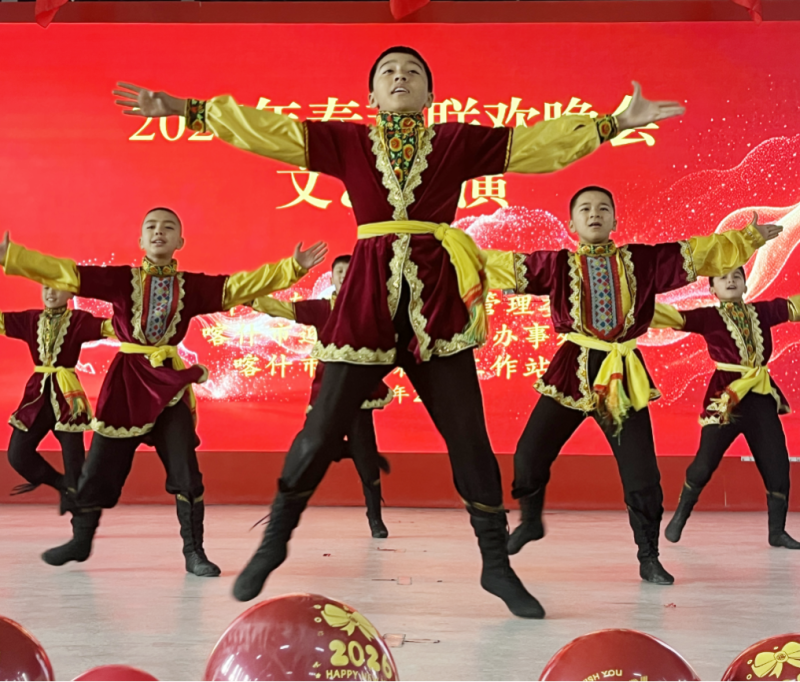 2月12日,迎宾大道街道携手中亚南亚工业园区管委会、驻地部队、辖区企业及各社区,共同举办春节联欢会。舞狮闹春拉开序幕,歌伴舞、热瓦甫演奏、旗袍走秀、腰鼓、古典舞等节目轮番登场,既有传统文化韵味,又有喀什本土风情。