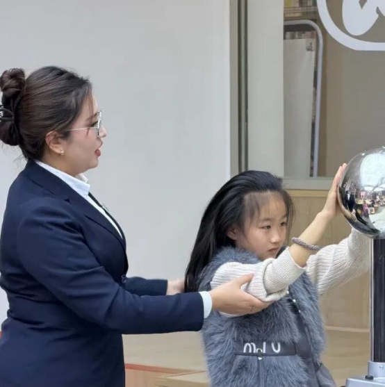 在科普分享环节,科技馆工作人员围绕静电、干冰形成原理及结构的力量等趣味知识展开讲解,现场演示“怒发冲冠”、干冰起雾等经典科学小实验。生动的实操展示让科学知识变得鲜活易懂,小朋友们全神贯注聆听,在轻松愉悦的氛围中收获知识,探索科学的种子也悄然在心中扎根。