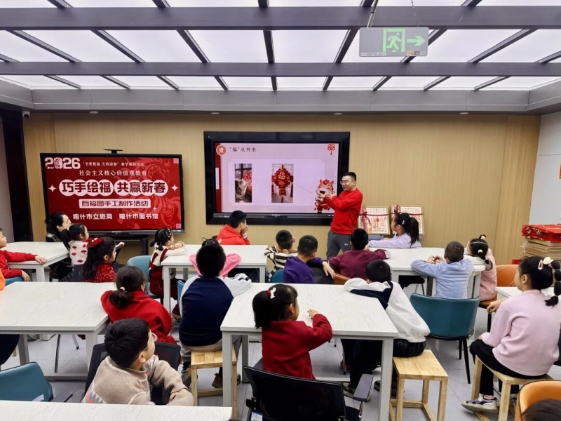 新春添喜,福气满堂。2月13日,喀什市图书馆在“悦读粤有趣”城市书吧,举办“书香载福文韵迎春”春节系列活动之“巧手绘福共赢新春”百福图手工制作活动。