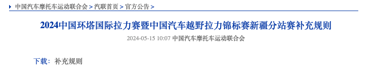 温馨提示:补充规则共111页,登录中国汽联官网下载/查询: