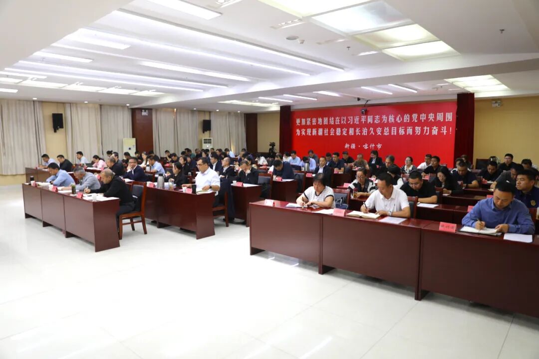 9月30日下午,喀什市召开干部大会,深入学习贯彻习近平总书记率中央代表团出席自治区成立70周年庆祝活动期间的重要讲话重要指示精神,贯彻落实自治区、地区干部大会精神,动员广大党员干部群众牢记嘱托、感恩奋进,为在新征程上更好建设团结和谐、繁荣富裕、文明进步、安居乐业、生态良好的社会主义现代化新疆贡献喀什市力量。地委委员、喀什市委书记药宁主持会议并讲话。