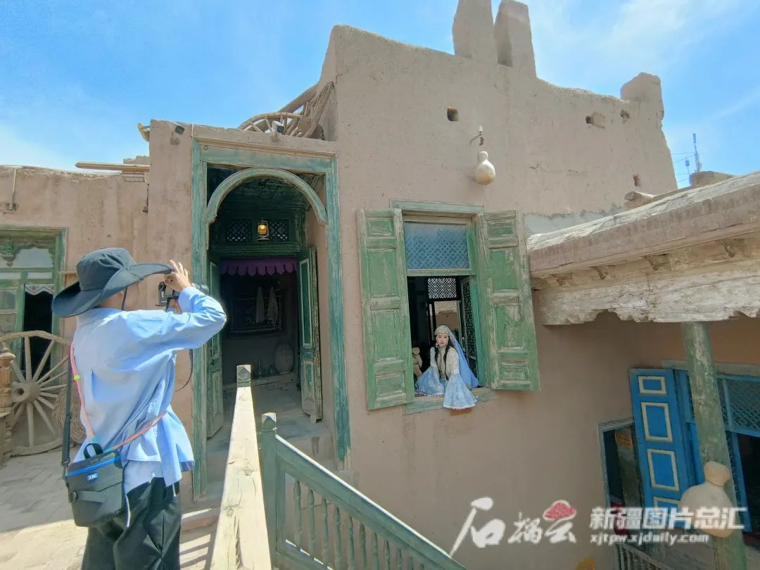 游客在喀什古城景区买买提的老房子内留影。石榴云/新疆日报记者 张治立摄