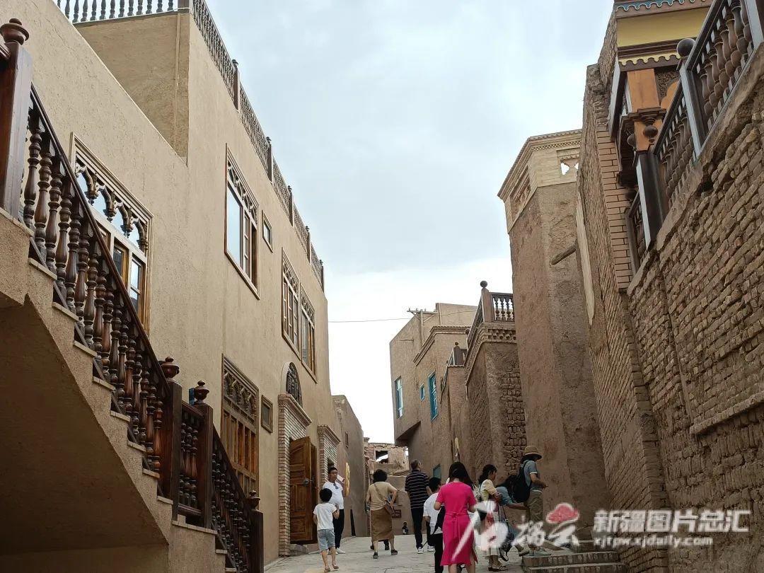 “其次,是古城人对生活的热爱。”卡哈尔·买买提明说,修建房屋时普遍使用木雕、砖雕等传统艺术,房前屋后种植花花草草等,都是居民热爱生活的体现。在这里,你可以看到一个清运垃圾的人哼着歌快乐地干活,一个卖刨冰的人在调制时反复将碗中各种原料高高抛起。