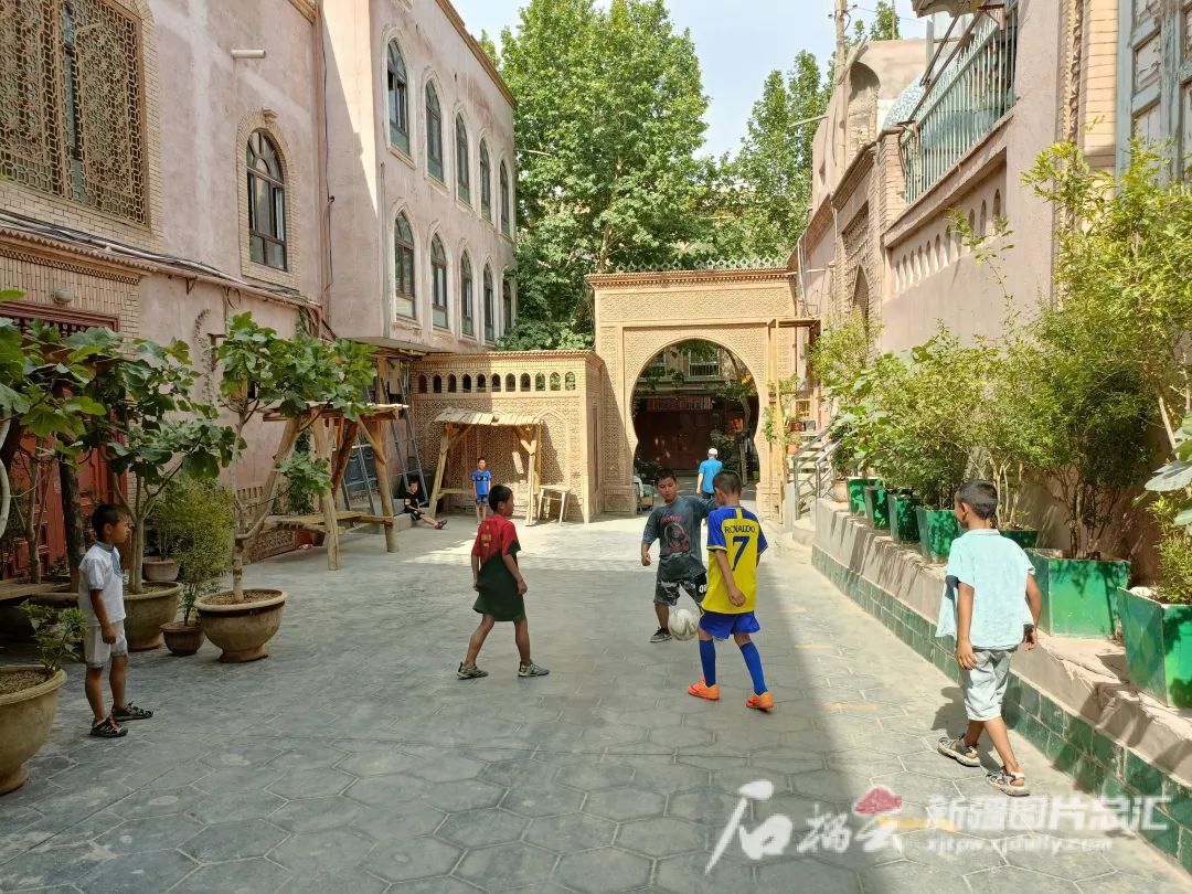 喀什古城小巷里踢足球的孩子们。石榴云/新疆日报记者 张治立摄