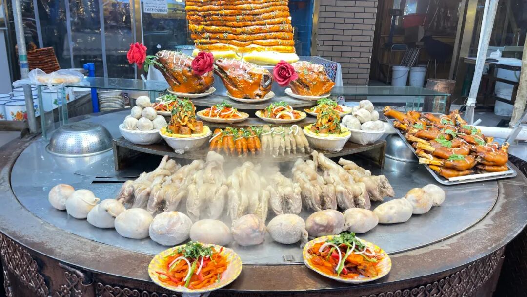 汗巴扎夜市上的各色美食。马丽娜摄