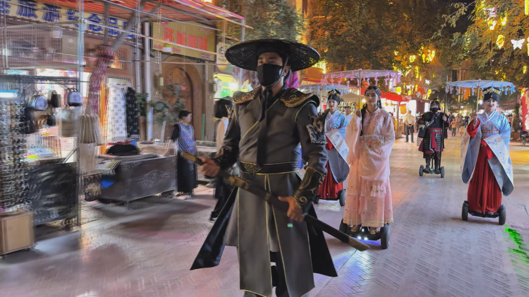 喀什古城景区管委会演员帕丽达·吐尔逊说:“每天晚上21:30到22:10,《大侠侍女巡游》演出都会准时和大家见面,我们把路线定在了东片区游客比较集中的街道,让大家近距离感受古城独特的文化氛围。”