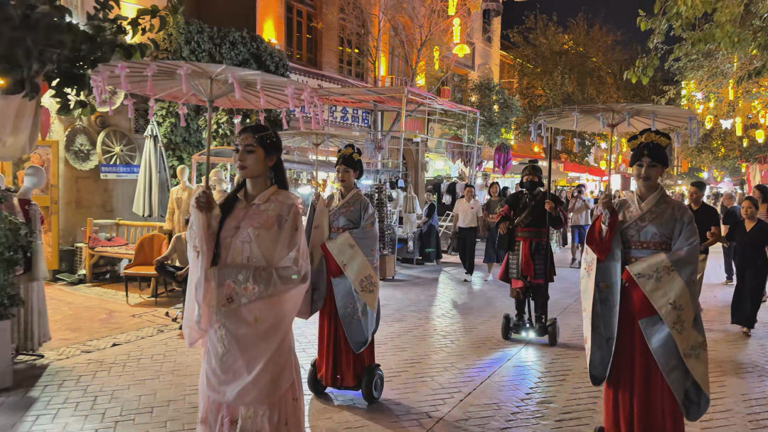 每当夜幕降临,璀璨的灯火为古城的喧嚣注入了别样的风情。纵横交错的街巷愈发生动,光影交错之间,商贩热情的吆喝、诱人的食物香气与悠扬的民族乐声交织弥漫,将白日的热闹升华为一种可供沉浸体验的夜间活力——让人更想放慢脚步,细细品味这座古城昼夜不息的魅力。