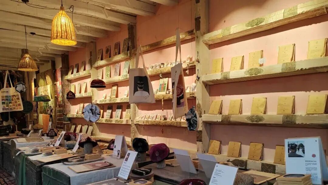 喀什古城景区文创店店员小奇说:“最受欢迎的文创产品是‘朵帕’系列,它以新疆传统花帽为设计灵感。茶歇时提供的花茶也源自本地,就连展览中也陈列了许多南疆手工艺品——我们希望通过这些方式,传递南疆文化,让每位来喀什的朋友,都能更深入地了解这片土地。”