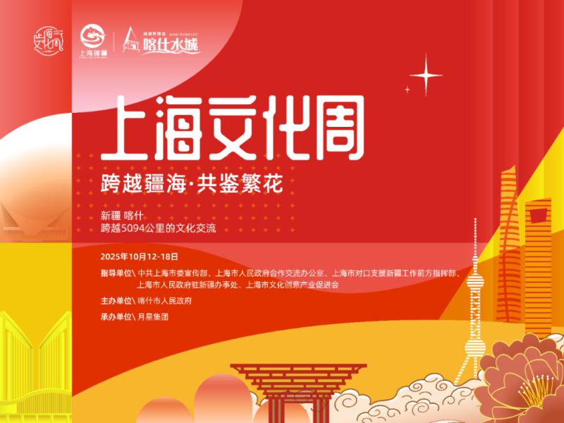 为深化沪喀两地文化交流,展现对口支援合作成果,10月12日,由中共上海市委宣传部、上海市人民政府合作交流办公室、上海市对口支援新疆工作前方指挥部、上海市人民政府驻新疆办事处等单位指导,喀什市人民政府主办,月星集团承办的“跨越疆海·共鉴繁花——2025上海文化周”活动,在南疆环球港喀什水城启动。