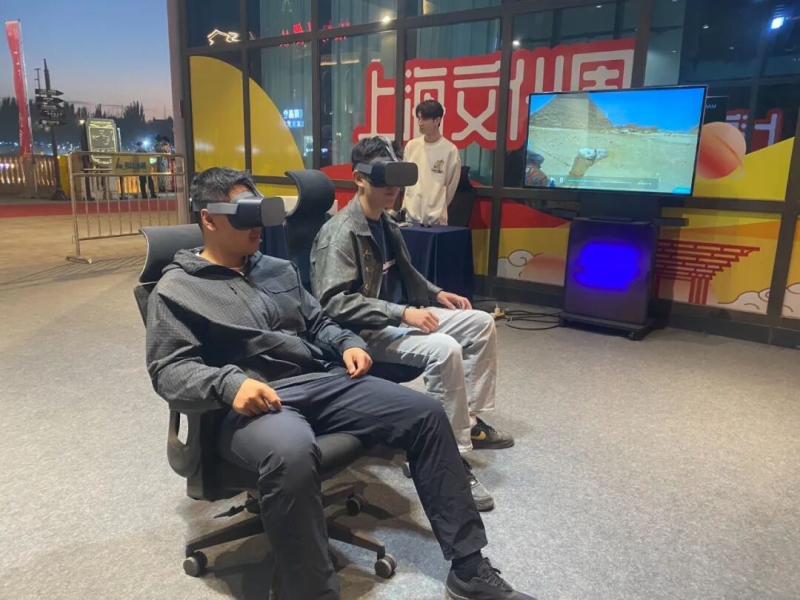 除美食文化板块外,其他板块也各有特色,从不同维度搭建起沪喀文化交流的桥梁。其中,产业文化板块中的沪喀文化交流展通过图文展板、实物陈列等形式,生动呈现沪喀对口支援以来在民生改善、产业发展、文化互鉴等领域的成果,让市民直观感受两地携手共进的历程;红色文化板块则整合“初心驿站”和VR场景体验,弘扬红色革命精神,打造沉浸式红色教育空间。在VR体验馆内,市民戴上VR设备就能“身临其境”游览外滩、豫园、上海中心等标志性景点,感受上海的都市风光与历史底蕴;初心驿站以红色文化为主题,通过红色故事分享及红色文化沙龙茶歇与红色电影赏析,让群众在轻松氛围中感受红色文化的熏陶;非物质文化遗产板块通过举办“艾德莱斯+海派设计”秀场,传递多元文化精髓,展现两地文化的碰撞与交融。
