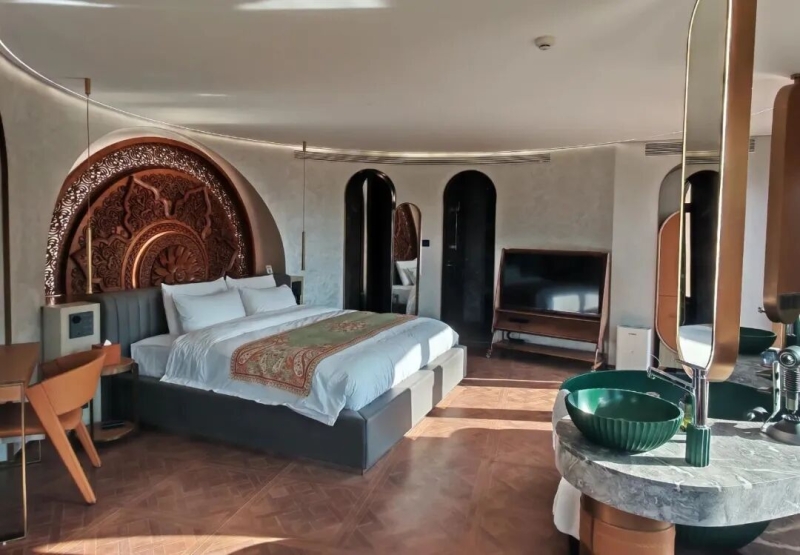 工作人员还介绍,民宿聘请了10余名古城居民负责接待与服务。“现在不是旅游旺季,来喀什古城想追求深度体验的游客也不少。民宿目前的入住率稳定在60%左右。”喀什古城”空中花园“民宿值班经理萨达木·麦合木提说。