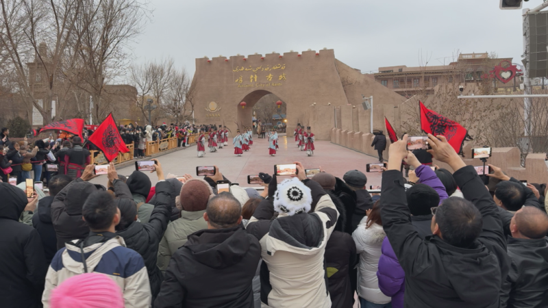 清晨的喀什古城暖意涌动,开城仪式如约而至,游客们驻足观赏、拍照留念,定格专属喀什市的新年仪式感。