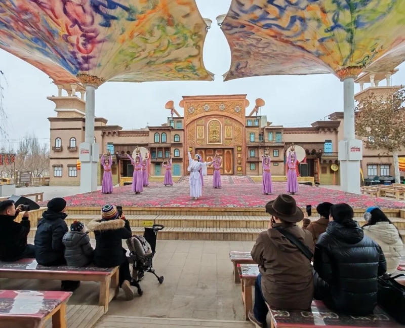 “元旦期间,遇见喀什国际演艺中心每天下午准时开启限定文化快闪,现场观众可以领取专属新年伴手礼。《遇见喀什》将持续深化‘文旅融合’,联合喀什市周边的景点、酒店联动推出优惠联票,吸引更多人走进这座丝路明珠。”遇见喀什国际演艺中心副总经理王威威说。
