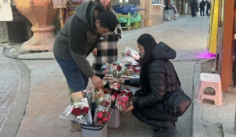 “喀什古城白天夜晚都游人如织,我每天都会进购新鲜玫瑰花,一天能卖出大约300束。”古丽米热·托合提说。